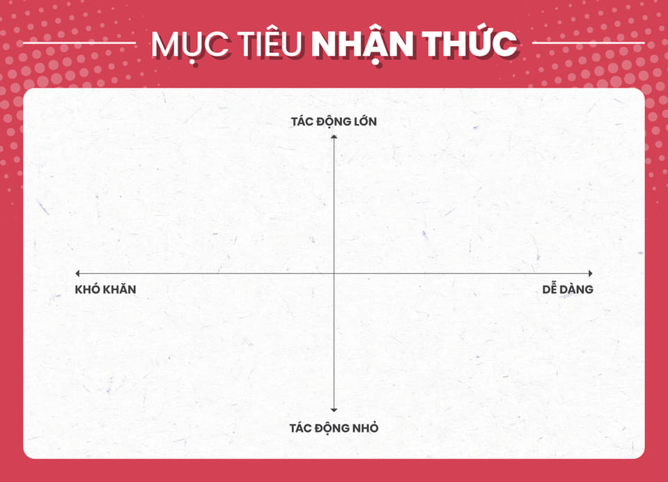 - Bước 2: Đối chiếu với trục X để kiểm tra xem sáng kiến này sẽ tạo ra tác động như thế nào đối với nhận thức thương hiệu? Cao hay thấp? đem lại hiệu quả gì?