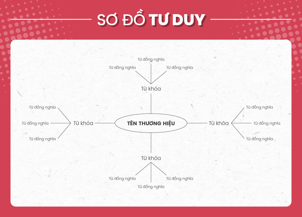 - Bước 2: Vẽ sơ đồ tư duy với tên thương hiệu ở giữa và các nhánh tương đương với số lượng từ khóa
