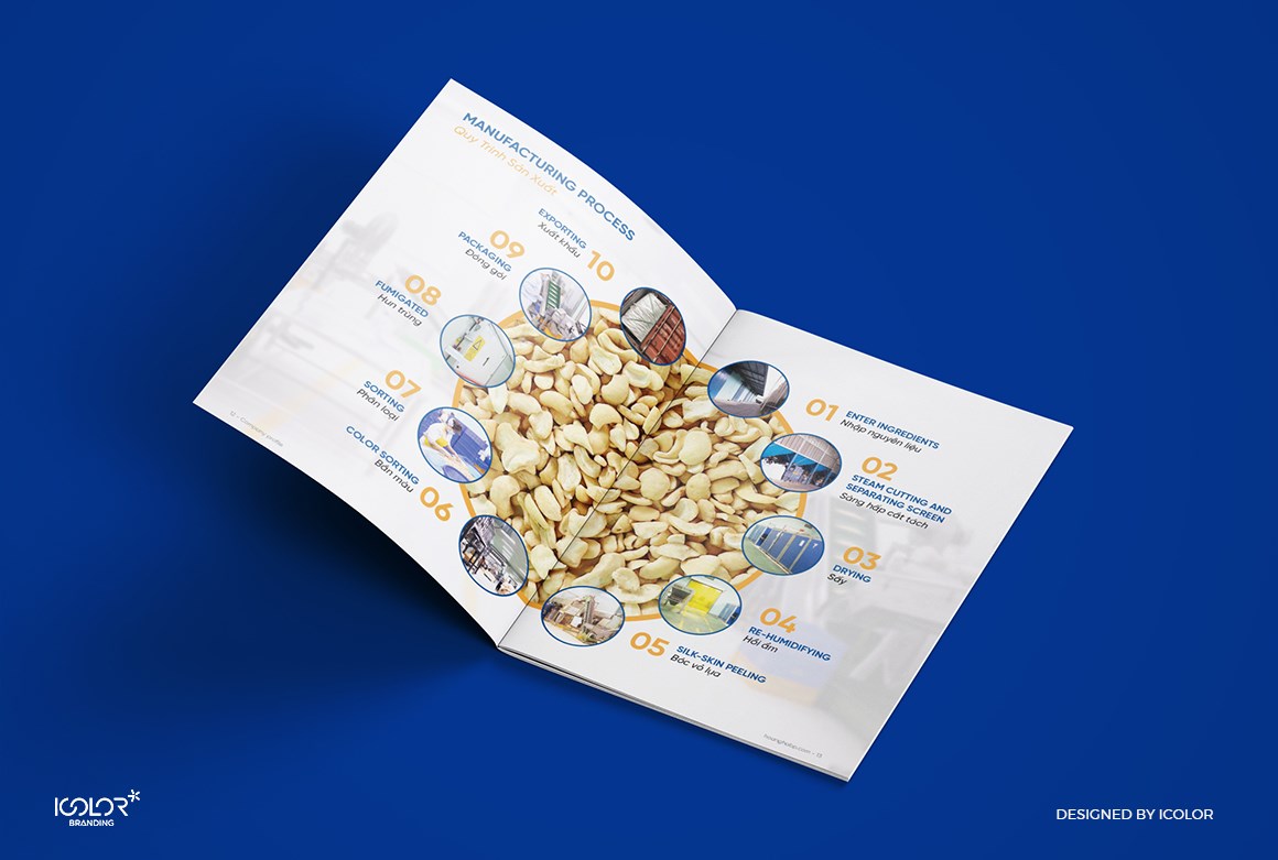 Dự án thiết kế Hồ sơ năng lực cho Hoàng Hà Bình Phước Import and Export JSC được xây dựng với phong cách hiện đại, chuyên nghiệp và giàu tính nhận diện. Hình ảnh hạt điều, quy trình sản xuất cùng bố cục tinh gọn giúp truyền tải thế mạnh xuất khẩu, chất lượng sản phẩm và định hướng phát triển bền vững của doanh nghiệp.