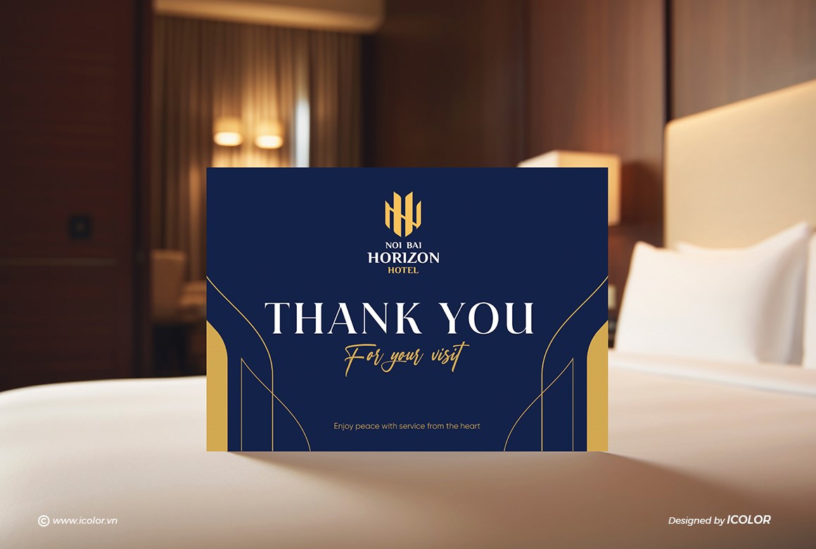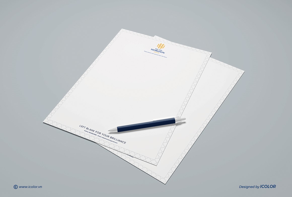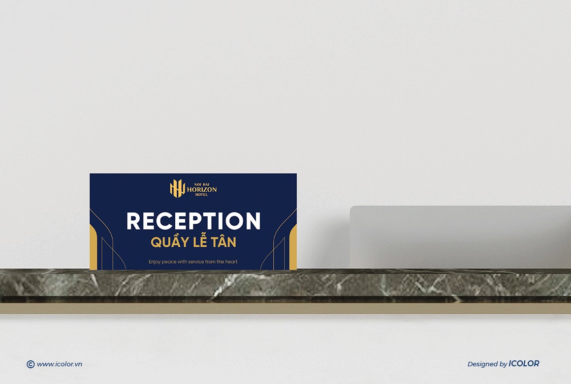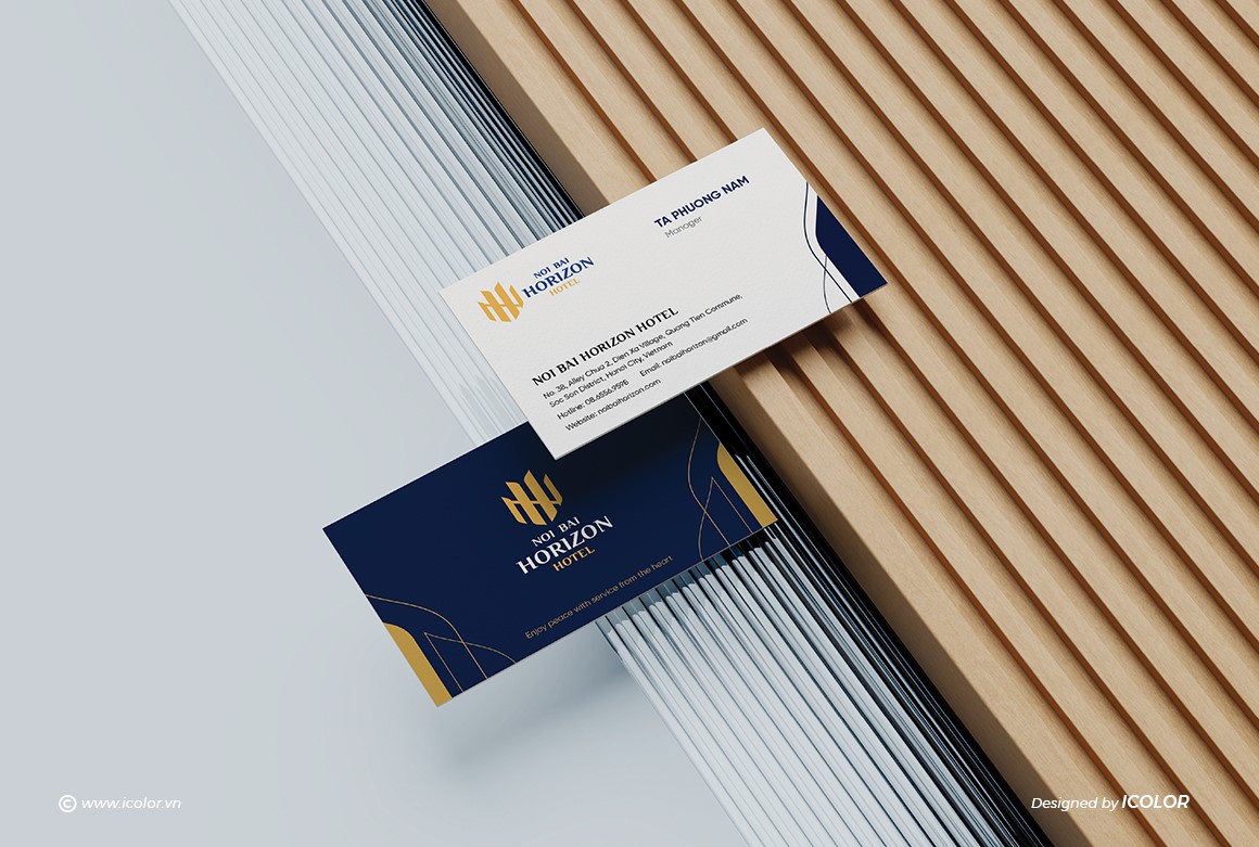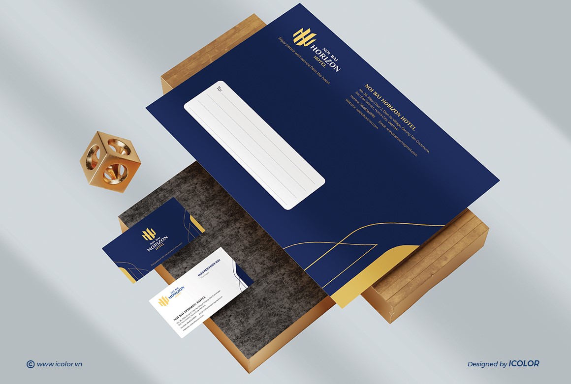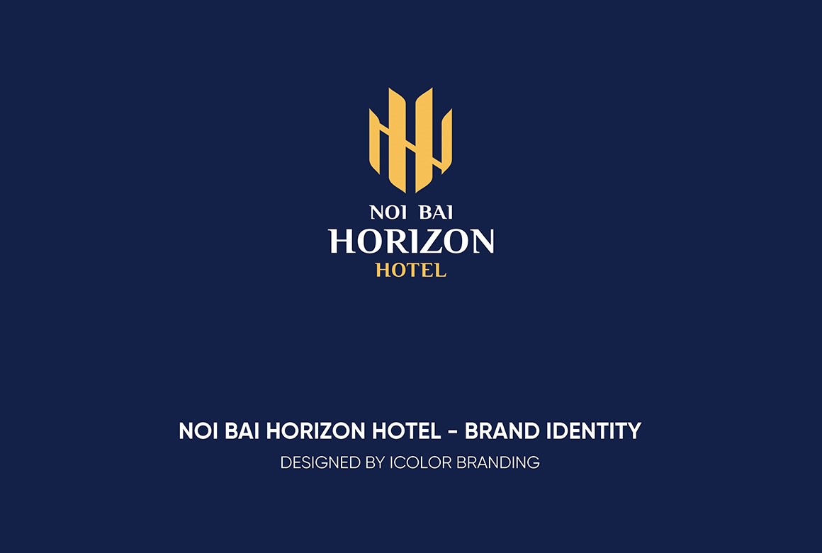 Biểu tượng trong logo Noi Bai Horizon Hotel là sự cách điệu khéo léo từ hai chữ cái N và H, đại diện cho “Noi Bai” và “Horizon”. Các nét vàng được sắp xếp đối xứng, tạo thành hình ảnh vững chắc như những tòa nhà hoặc cánh chim – gợi liên tưởng đến sự kết nối với sân bay và ngành du lịch. Thiết kế vừa hiện đại vừa tối giản, thể hiện tính chuyên nghiệp, đẳng cấp và định hướng quốc tế. Màu vàng kim nổi bật trên nền xanh navy giúp biểu tượng trở nên sang trọng, dễ ghi nhớ và tạo ấn tượng mạnh với khách hàng.