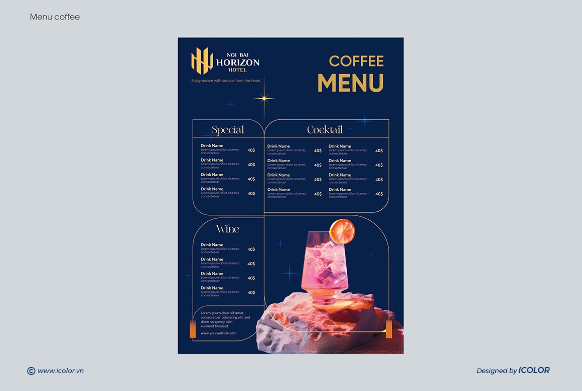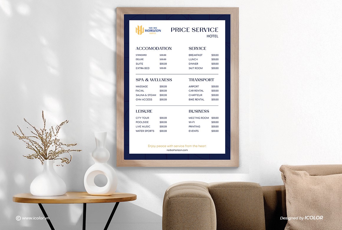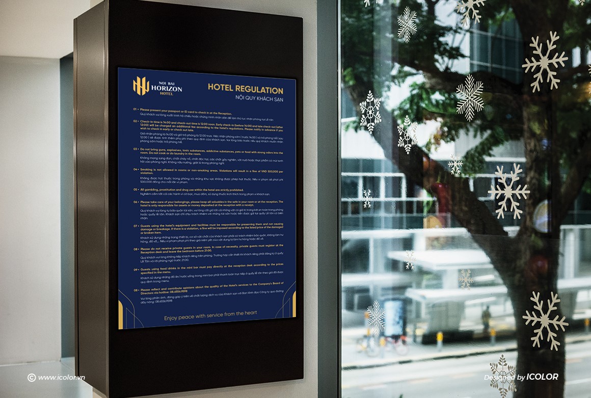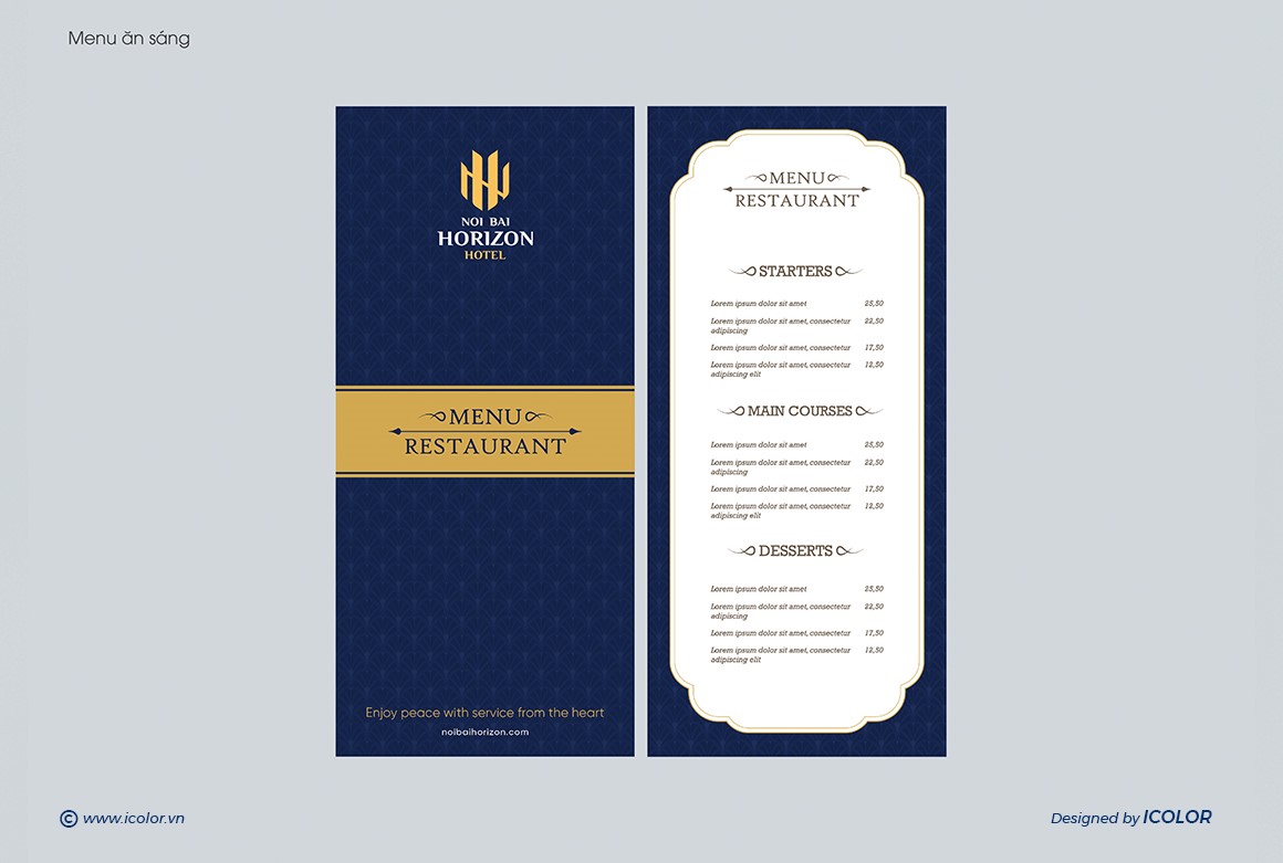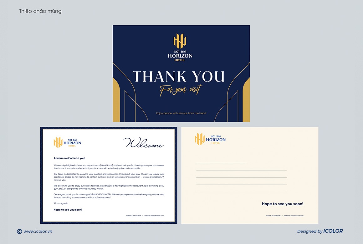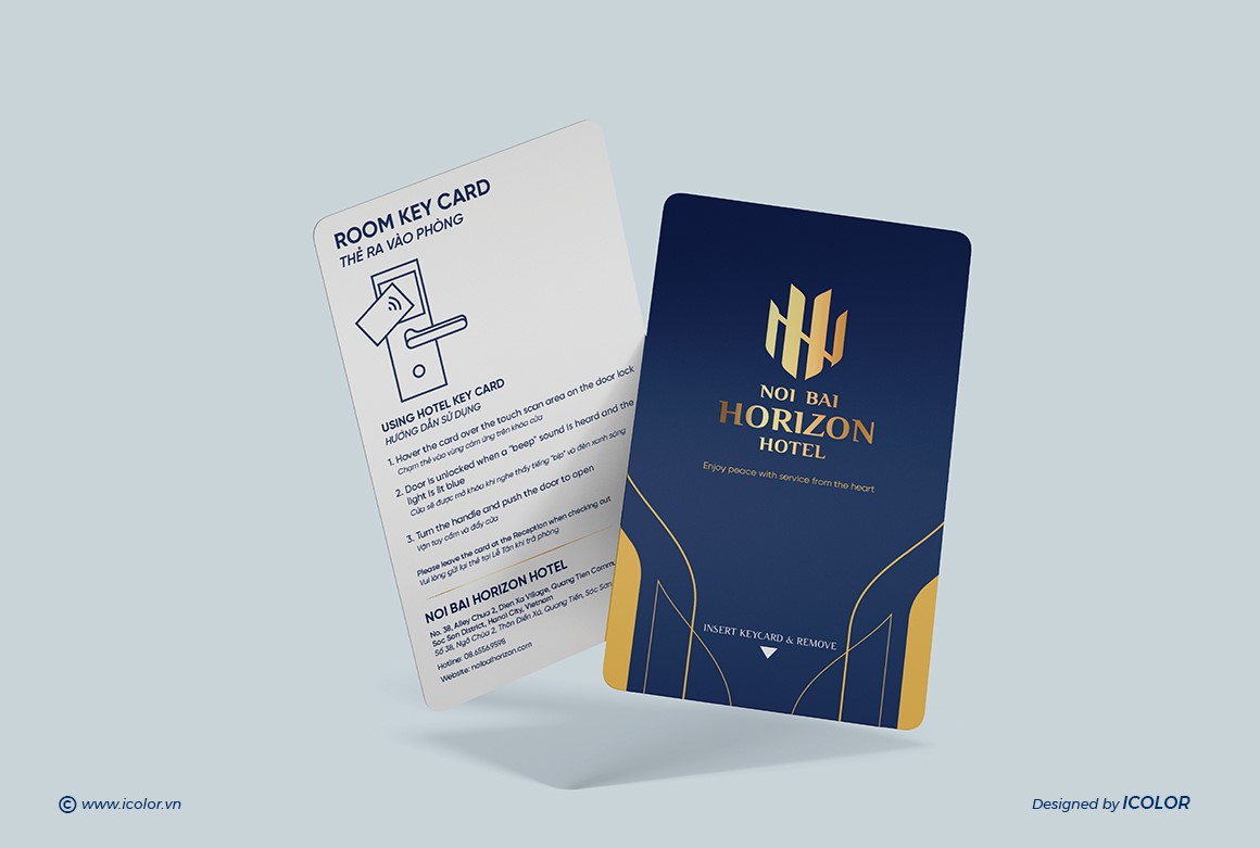Biểu tượng trong logo Noi Bai Horizon Hotel là sự cách điệu khéo léo từ hai chữ cái N và H, đại diện cho “Noi Bai” và “Horizon”. Các nét vàng được sắp xếp đối xứng, tạo thành hình ảnh vững chắc như những tòa nhà hoặc cánh chim – gợi liên tưởng đến sự kết nối với sân bay và ngành du lịch. Thiết kế vừa hiện đại vừa tối giản, thể hiện tính chuyên nghiệp, đẳng cấp và định hướng quốc tế. Màu vàng kim nổi bật trên nền xanh navy giúp biểu tượng trở nên sang trọng, dễ ghi nhớ và tạo ấn tượng mạnh với khách hàng.