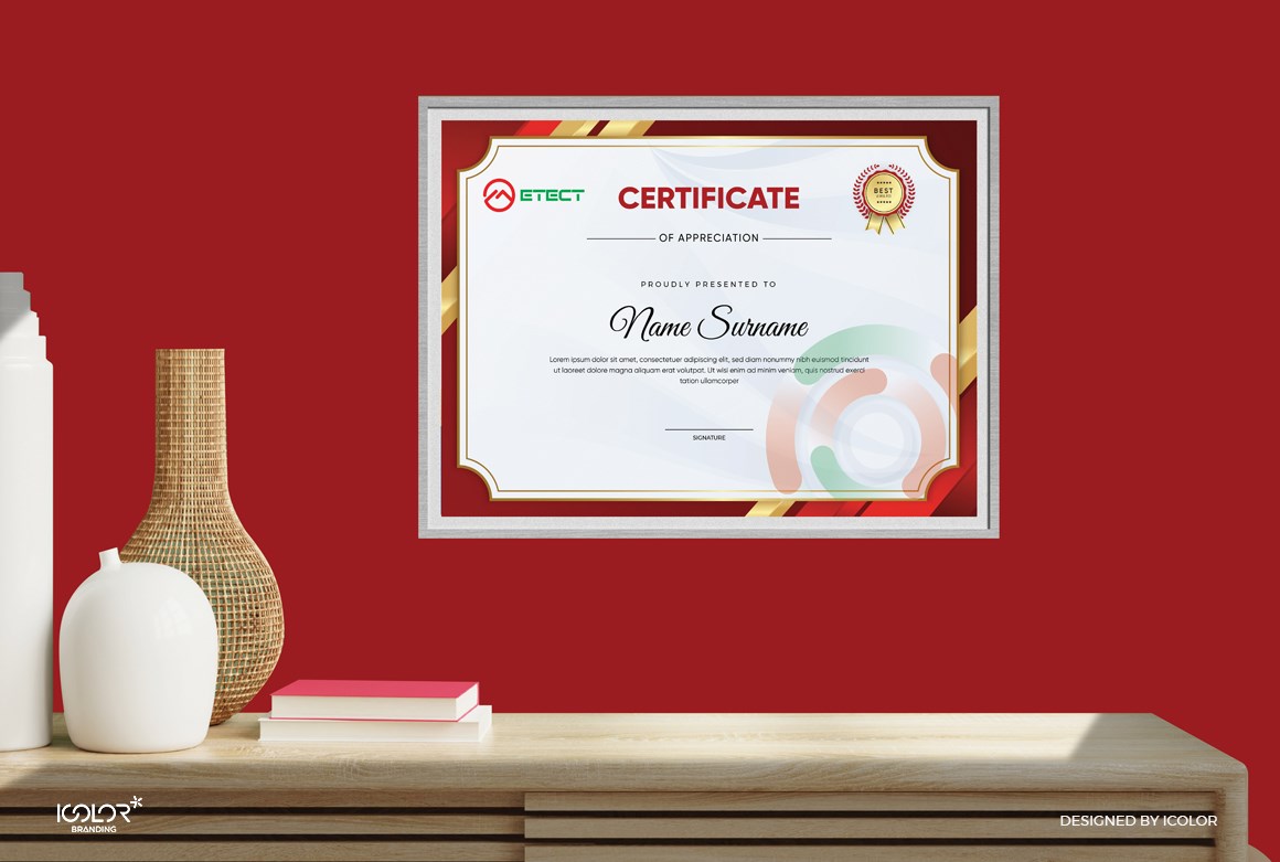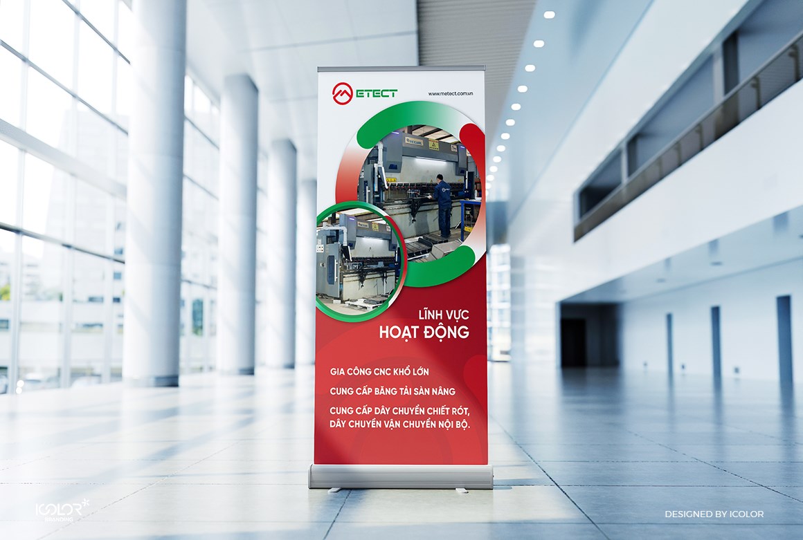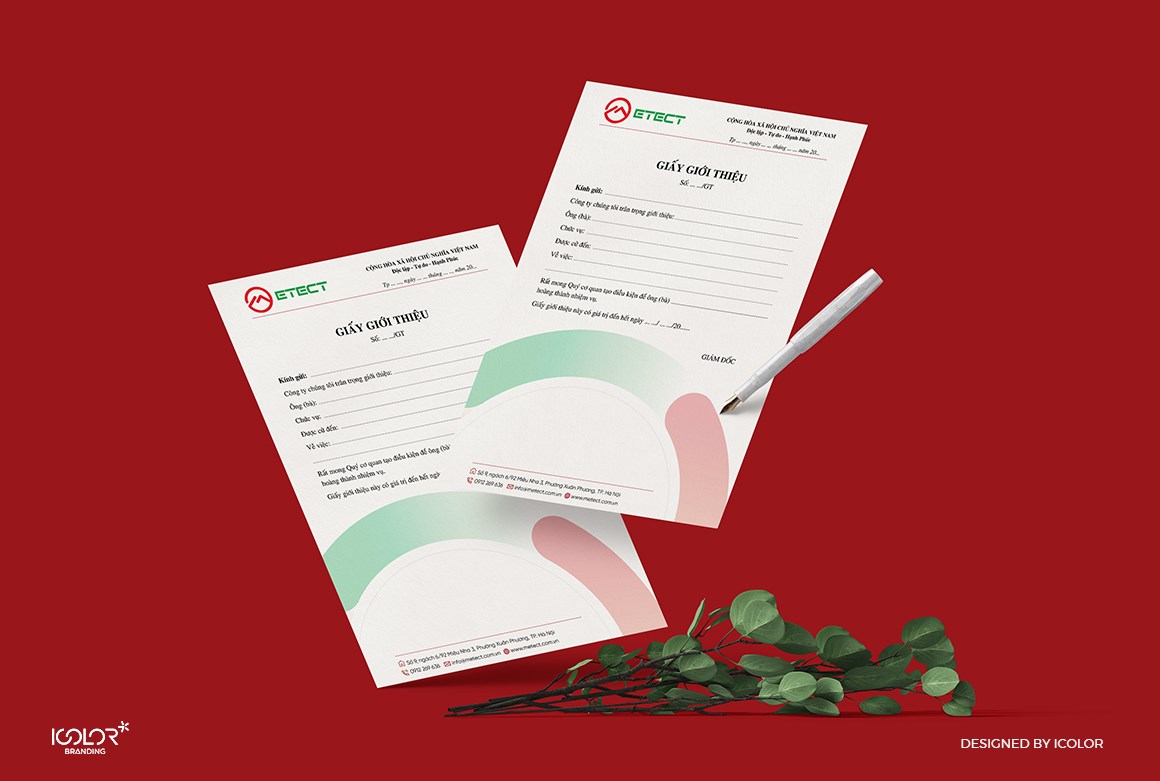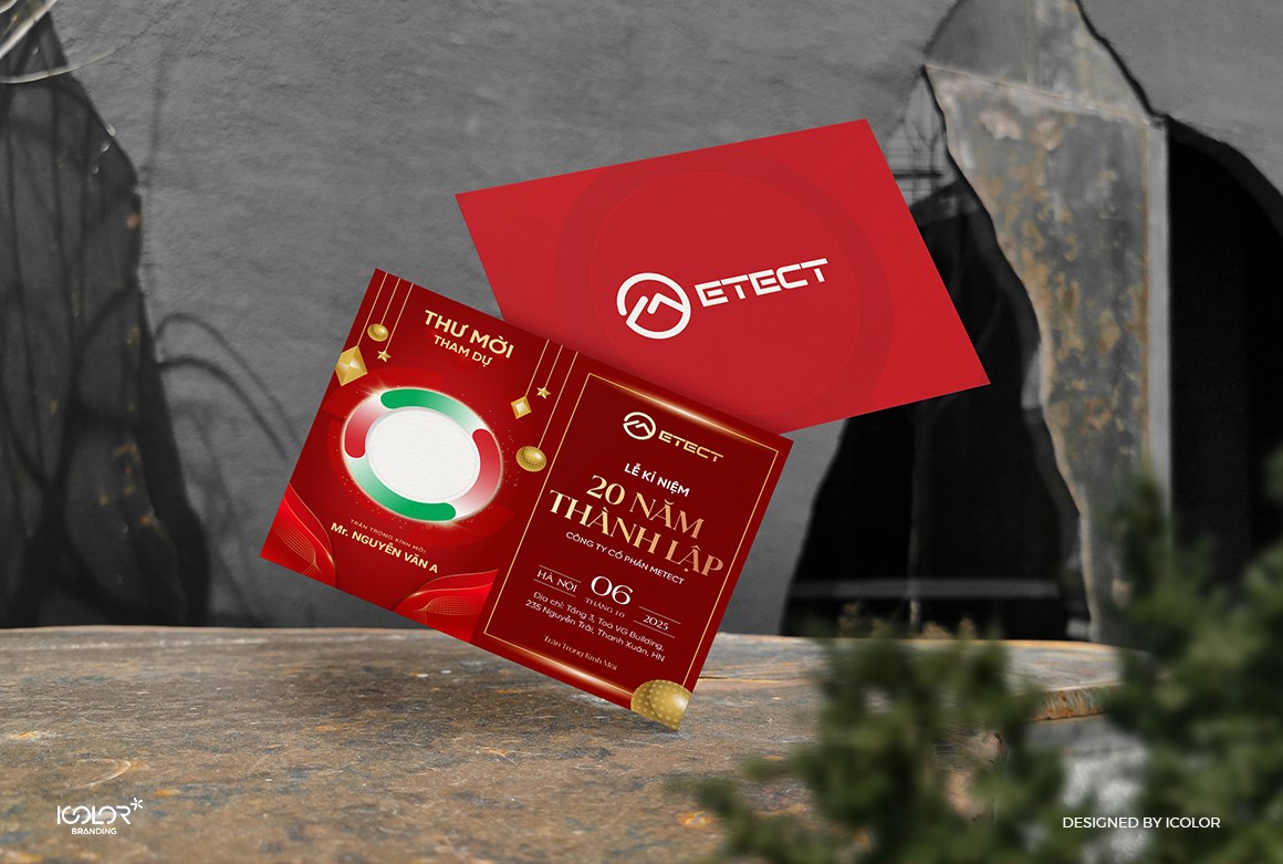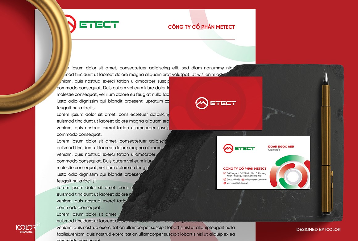 Bộ nhận diện thương hiệu do iColor Branding thiết kế được xây dựng theo phong cách hiện đại, tối giản nhưng giàu tính công nghệ. Logo sử dụng các đường nét gọn gàng, bố cục chắc chắn cùng hệ màu chuyên nghiệp, giúp thể hiện sự chính xác, tin cậy và định hướng phát triển bền vững của doanh nghiệp. Toàn bộ hệ thống nhận diện được triển khai đồng bộ trên các ấn phẩm văn phòng và truyền thông, tạo nên hình ảnh chuyên nghiệp và dễ nhận diện cho thương hiệu Metect.