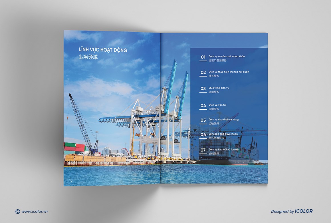 Dịch vụ của công ty bao gồm: Xuất nhập khẩu, Dịch vụ hải quan, Vận chuyển Logistics: