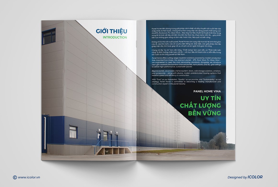 Profile doanh nghiệp đóng vai trò quan trọng trong việc giới thiệu năng lực, giá trị và định hướng phát triển, đồng thời tạo dựng sự tin tưởng với khách hàng và đối tác. Với thiết kế này, Panel Home Vina cho thấy hình ảnh một doanh nghiệp uy tín, hướng đến những giải pháp bền vững cho các công trình.