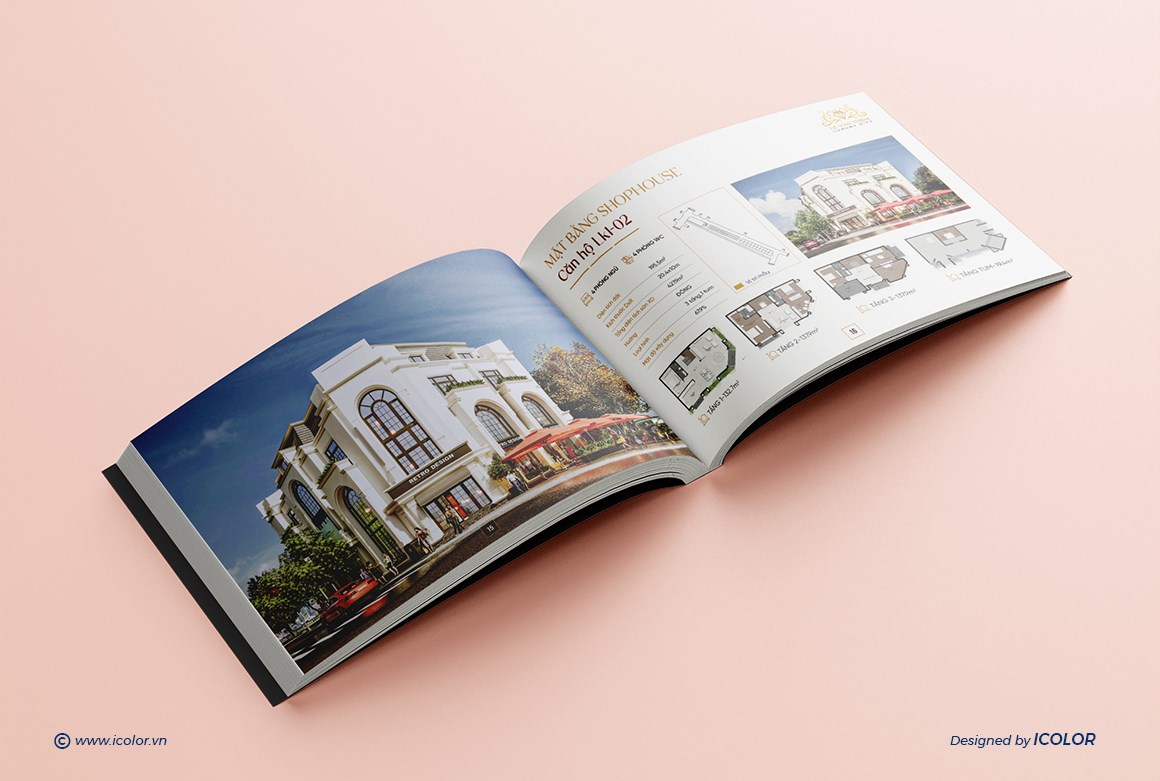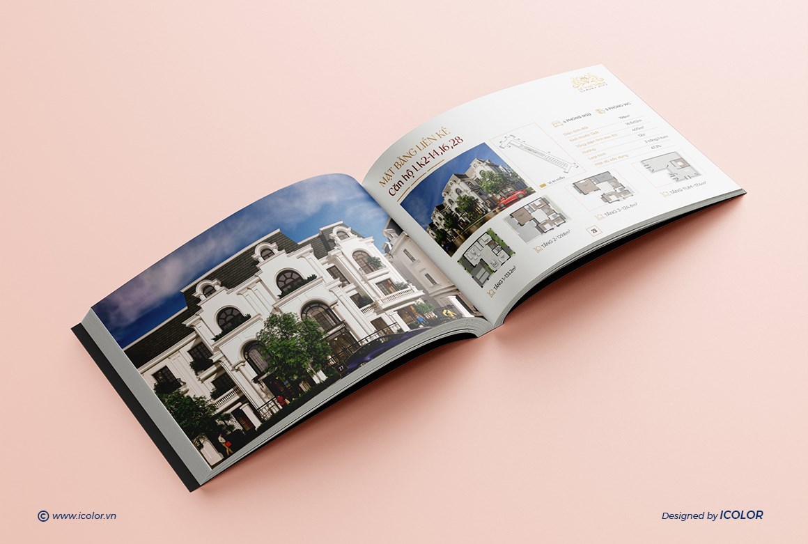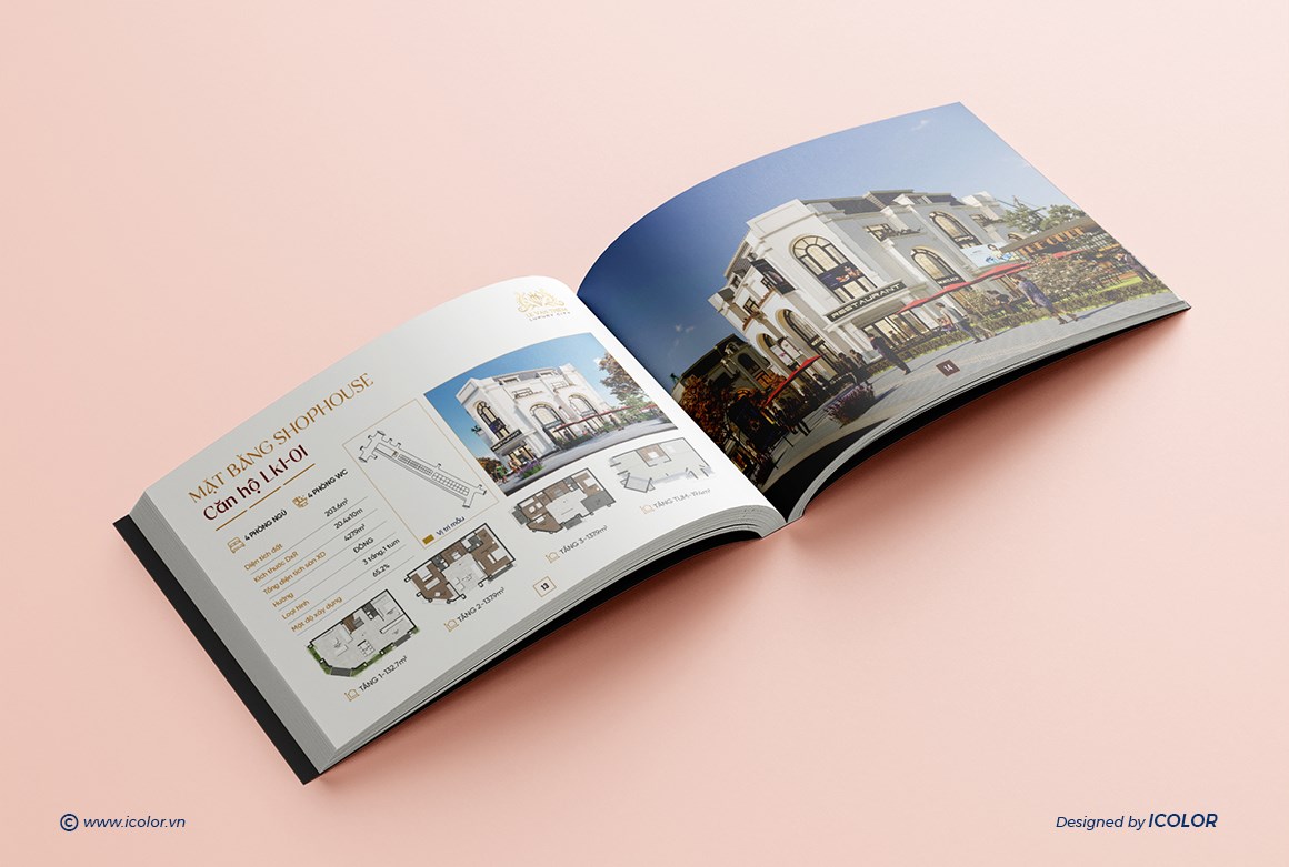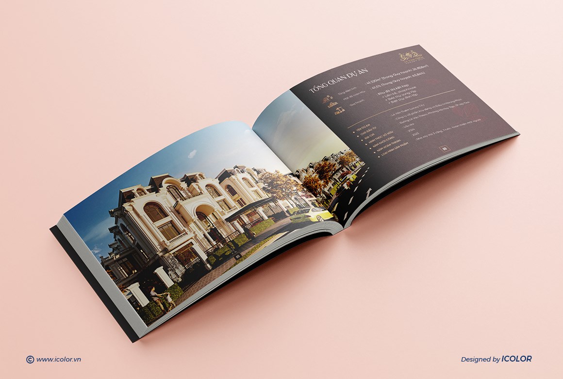 Catalogue Dự án Bất động sản mang dấu ấn sang trọng và thượng lưu, được thiết kế theo phong cách kiến trúc châu Âu tinh tế, kết hợp hài hòa giữa thẩm mỹ đẳng cấp và công năng hiện đại. Mỗi trang catalogue là sự kết hợp giữa hình ảnh trực quan và nội dung súc tích, giúp khách hàng dễ dàng hình dung không gian sống lý tưởng và trải nghiệm trọn vẹn giá trị mà Hoàng Phúc mang lại. Đây chính là tài liệu quan trọng, khẳng định thương hiệu và vị thế của công ty trên thị trường bất động sản cao cấp.