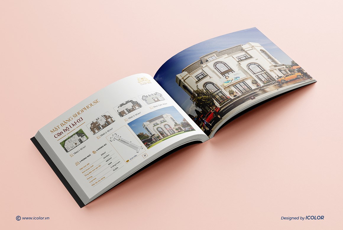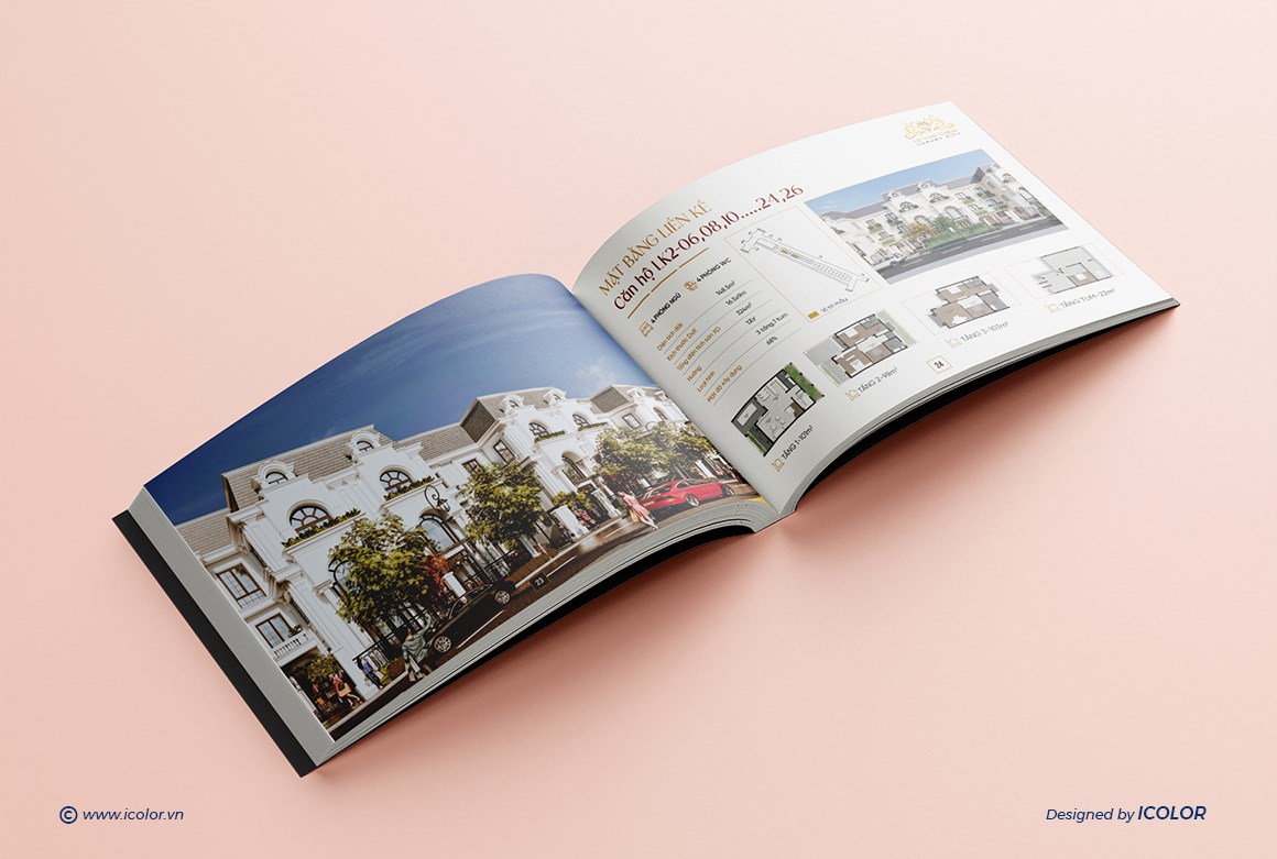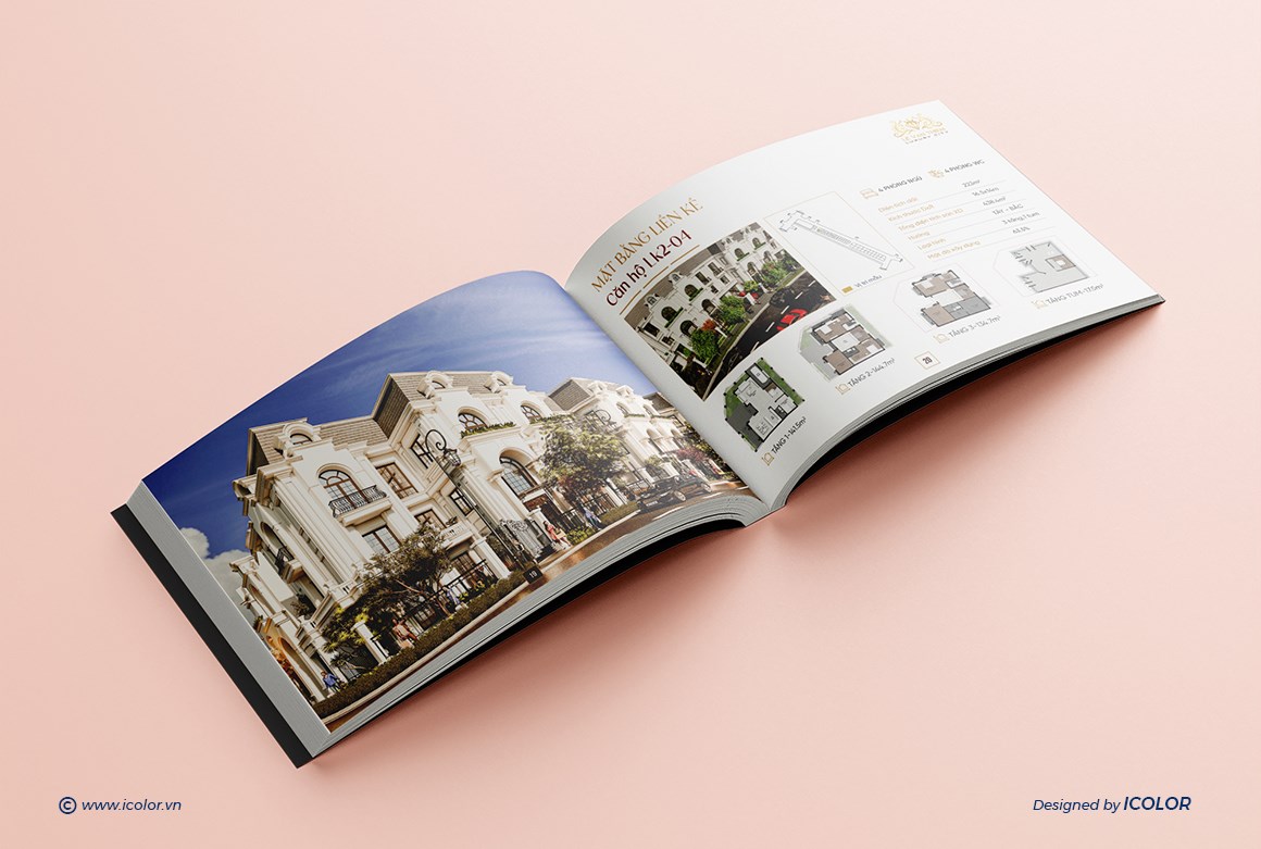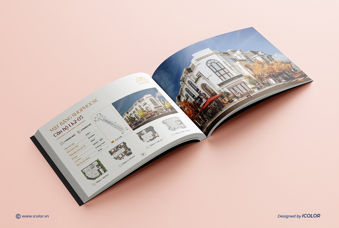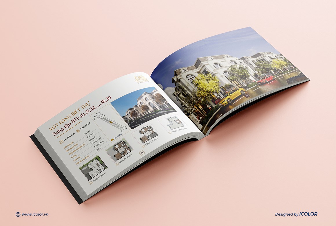 Catalogue Dự án Bất động sản mang dấu ấn sang trọng và thượng lưu, được thiết kế theo phong cách kiến trúc châu Âu tinh tế, kết hợp hài hòa giữa thẩm mỹ đẳng cấp và công năng hiện đại. Mỗi trang catalogue là sự kết hợp giữa hình ảnh trực quan và nội dung súc tích, giúp khách hàng dễ dàng hình dung không gian sống lý tưởng và trải nghiệm trọn vẹn giá trị mà Hoàng Phúc mang lại. Đây chính là tài liệu quan trọng, khẳng định thương hiệu và vị thế của công ty trên thị trường bất động sản cao cấp.