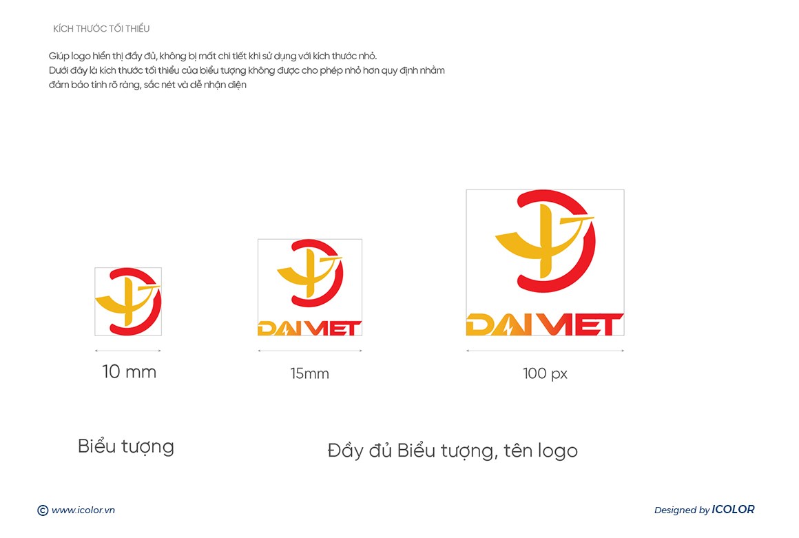 Logo của Đại Việt gây ấn tượng mạnh mẽ với tông màu đỏ và vàng chủ đạo, thể hiện tinh thần quyết liệt – năng động – tầm nhìn xa.