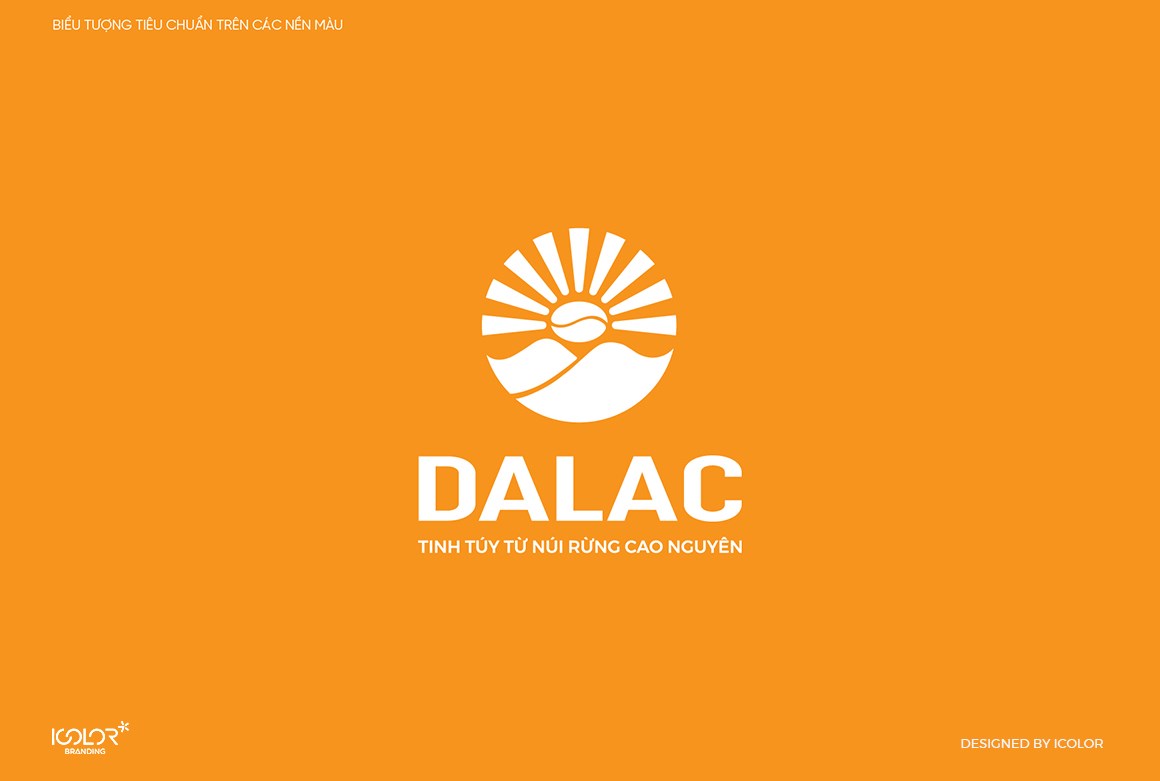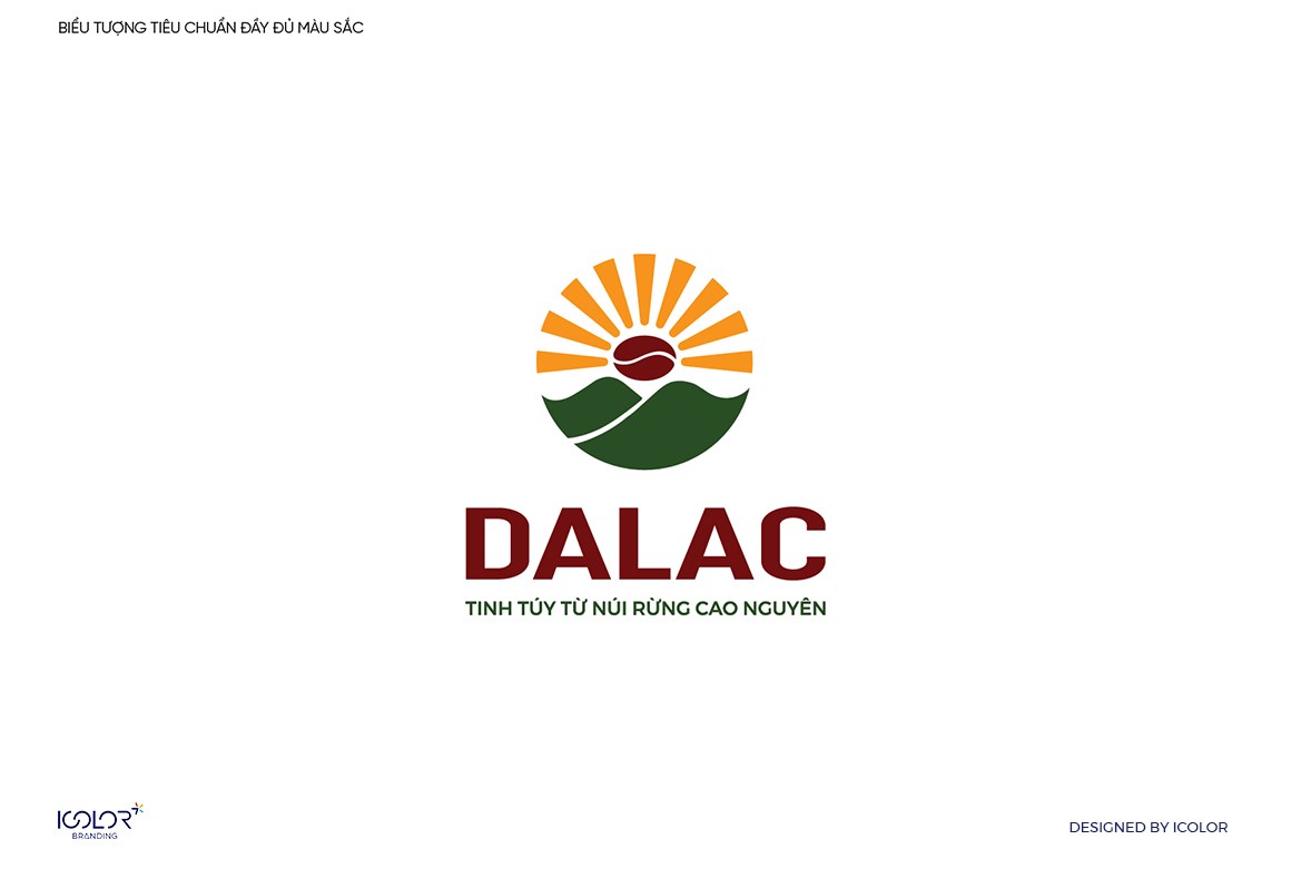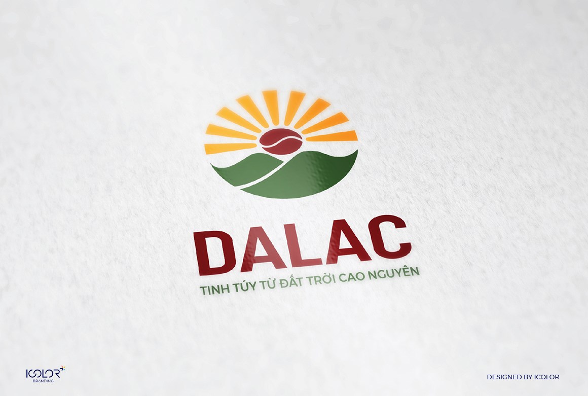 Logo Công ty Cổ phần Thực phẩm DALAC lấy cảm hứng từ hình ảnh mặt trời, núi rừng và hạt cà phê, tượng trưng cho nguồn nguyên liệu tinh túy từ vùng đất cao nguyên giàu bản sắc.