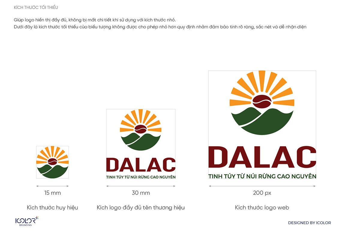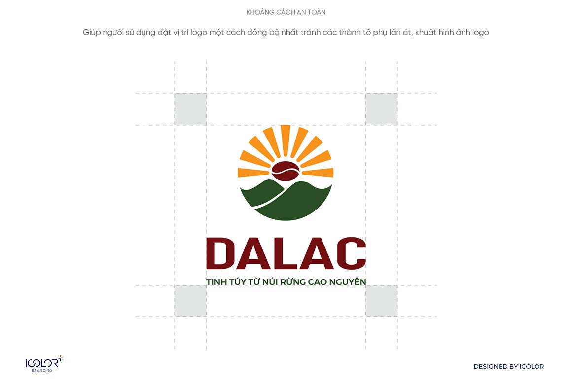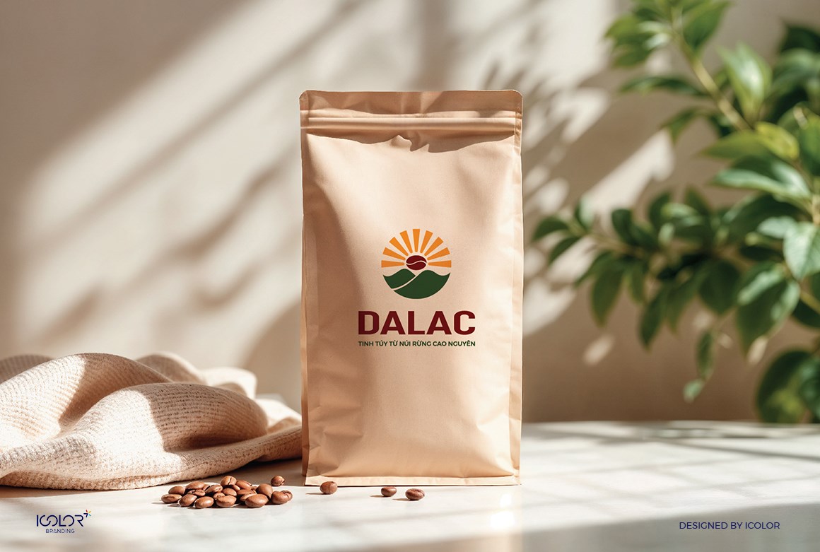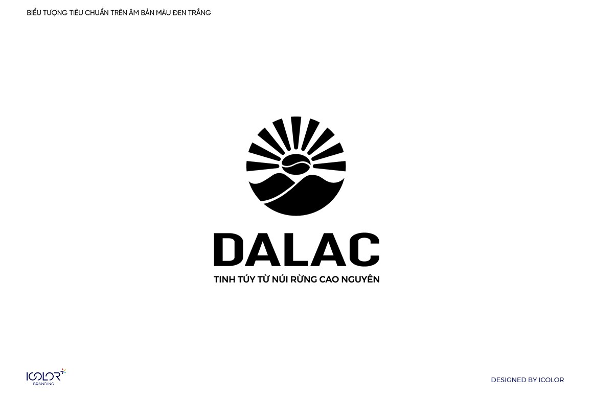 Logo Công ty Cổ phần Thực phẩm DALAC lấy cảm hứng từ hình ảnh mặt trời, núi rừng và hạt cà phê, tượng trưng cho nguồn nguyên liệu tinh túy từ vùng đất cao nguyên giàu bản sắc.