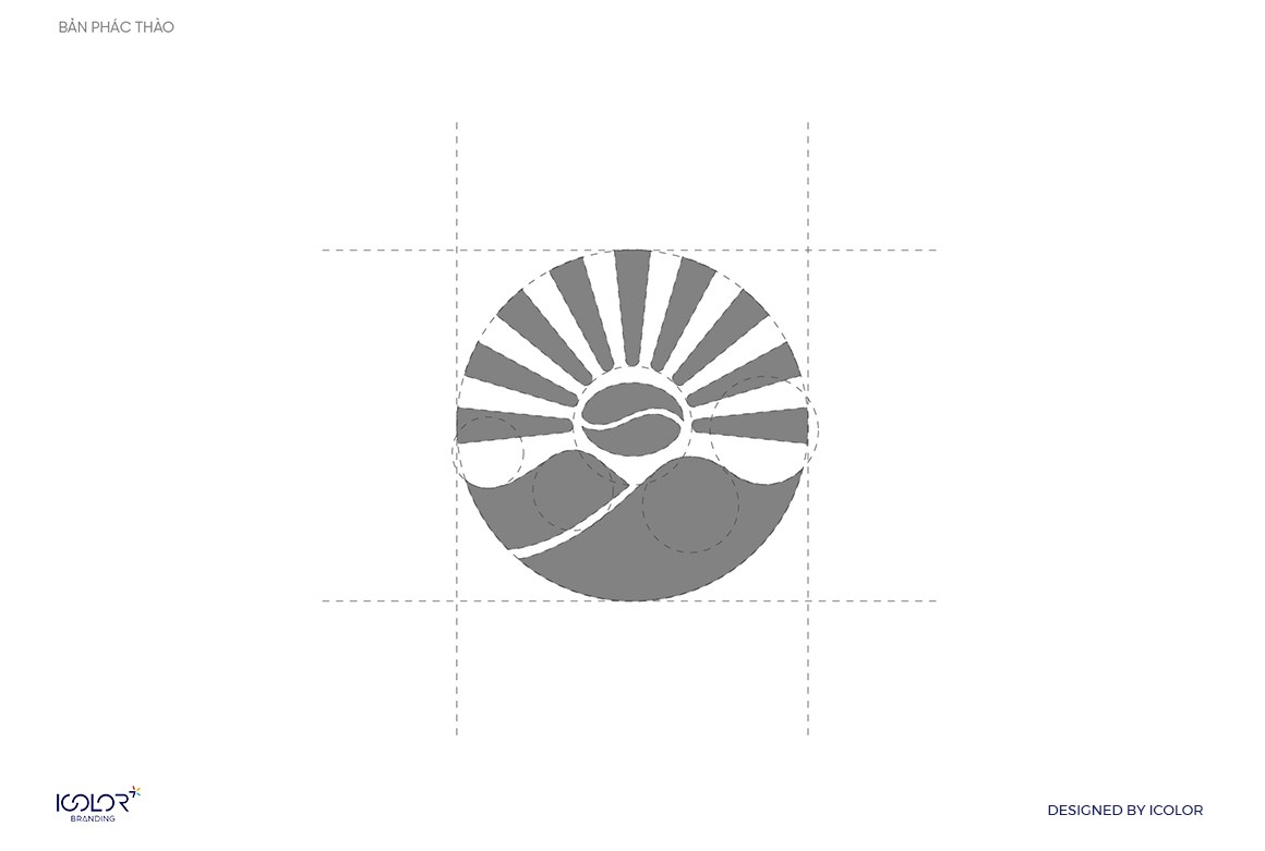 Biểu tượng mặt trời tỏa sáng phía trên những dãy núi thể hiện sự trù phú của thiên nhiên và nguồn năng lượng nuôi dưỡng nông sản. Hình ảnh hạt cà phê ở trung tâm gợi nhắc đến đặc trưng nông sản cao nguyên, đồng thời truyền tải giá trị tự nhiên và chất lượng.