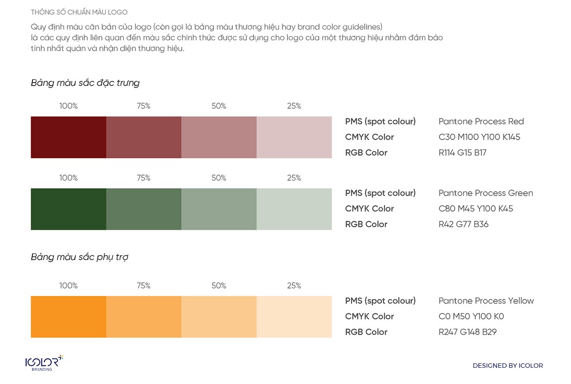 Sự kết hợp giữa các gam màu xanh, vàng và nâu mang ý nghĩa của thiên nhiên, sức sống và sự bền vững, góp phần xây dựng hình ảnh thương hiệu thực phẩm gắn liền với nguồn gốc tự nhiên và giá trị nguyên bản.