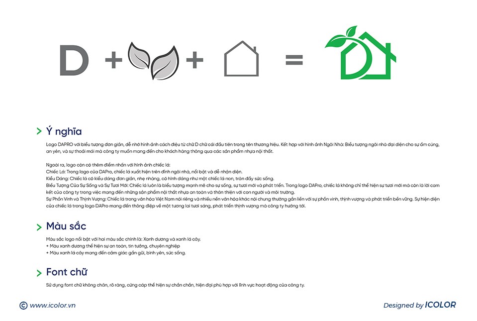 Chiếc Lá: Trong logo của DAPro, chiếc lá xuất hiện trên đỉnh ngôi nhà, nổi bật và dễ nhận diện.