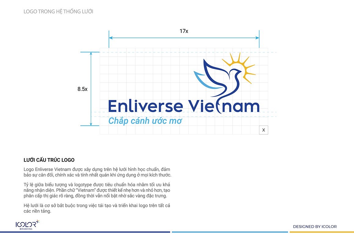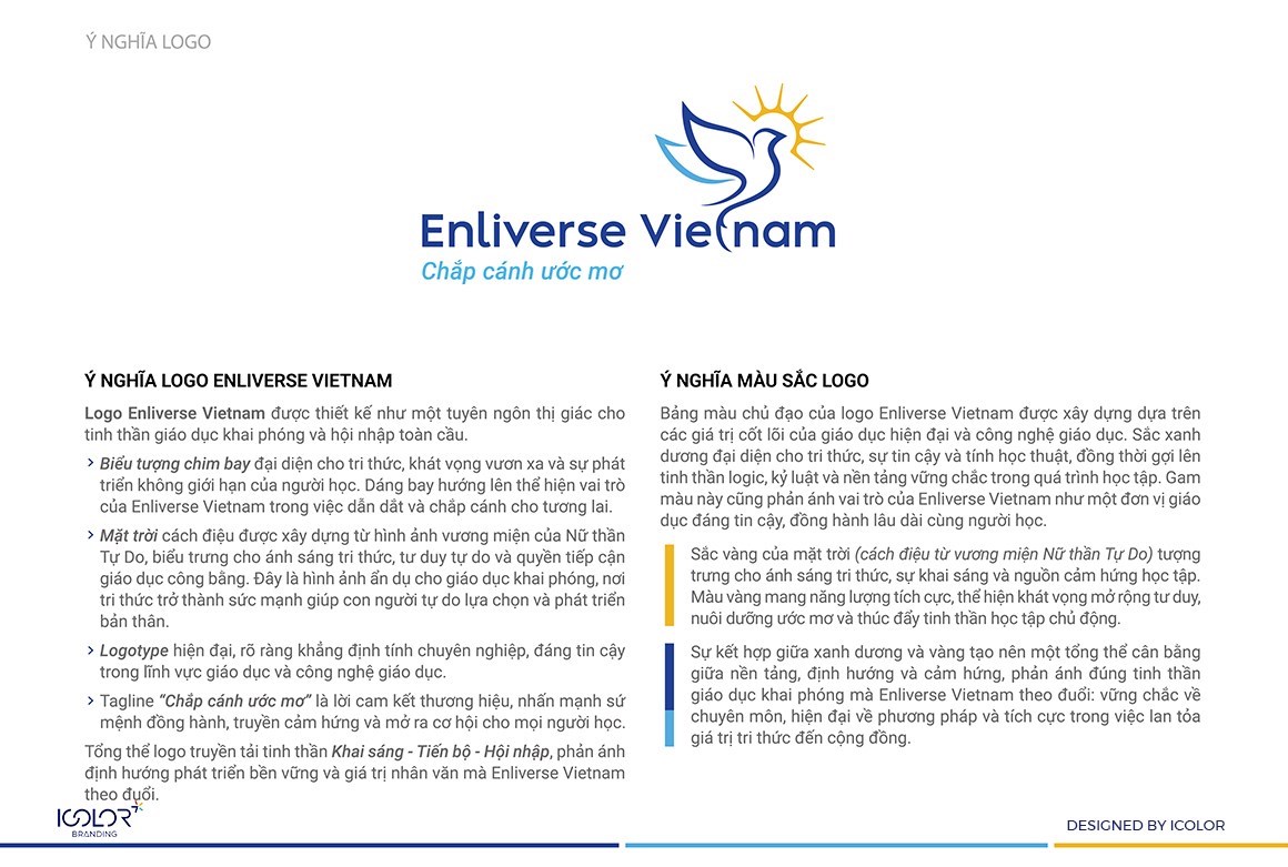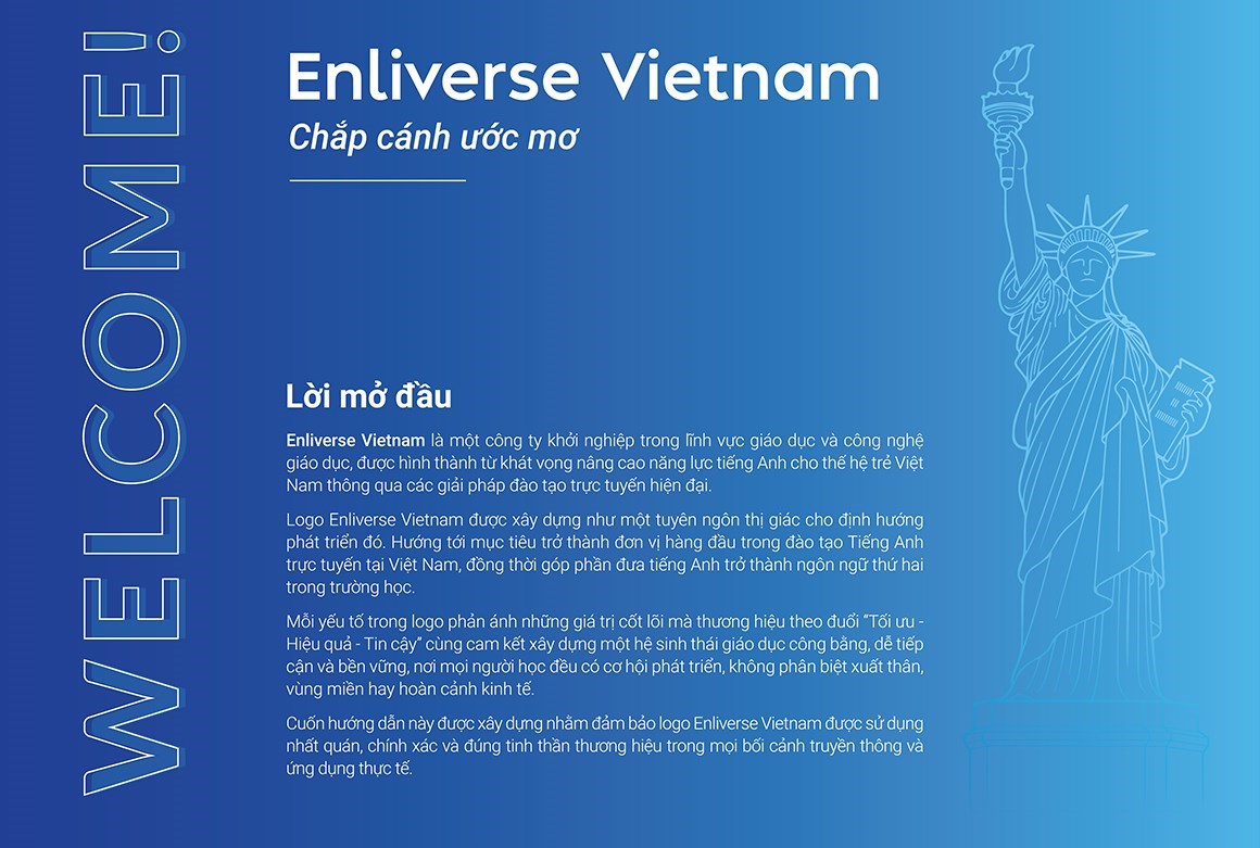 Logo Enliverse Vietnam được xây dựng như một tuyên ngôn thị giác cho định hướng phát triển đó. Hướng tới mục tiêu trở thành đơn vị hàng đầu trong đào tạo Tiếng Anh trực tuyến tại Việt Nam, đồng thời góp phần đưa tiếng Anh trở thành ngôn ngữ thứ hai trong trường học.