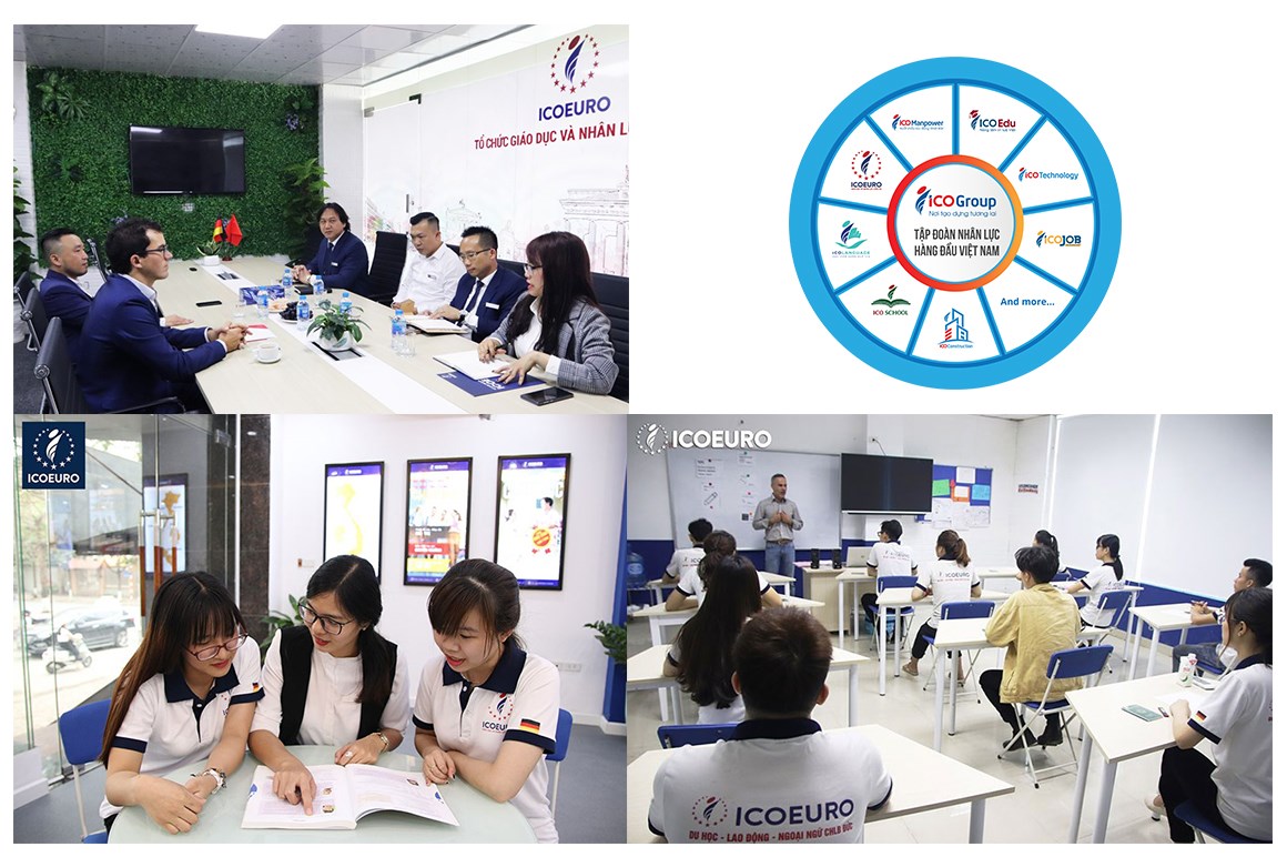Tổ chức giáo dục và nhân lực ICOEURO là thành viên trực thuộc tập đoàn ICOGroup (thành lập ngày 29 tháng 04 năm 2008), hoạt động chuyên nghiệp trong lĩnh vực Ngôn ngữ – Du học – Lao động CHLB Đức. Năm 2018, ICOEURO tự hào trở thành đơn vị du học Đức lớn nhất Việt Nam. ICOEURO ưu tiên hàng đầu cho việc xây dựng và phát triển đội ngũ nhân sự: Lấy nền tảng Trí tuệ – Trung thực – Chuyên nghiệp là thước đo cho các chuẩn mực hành động, ứng xử và phát triển.