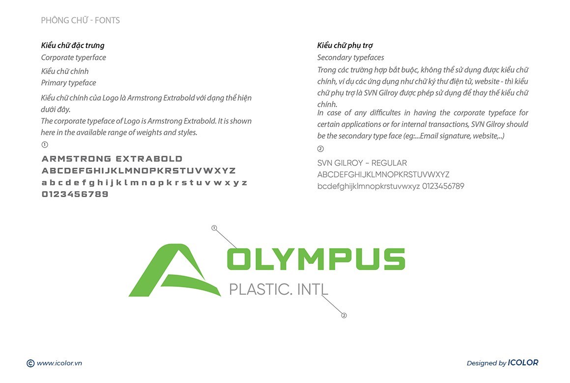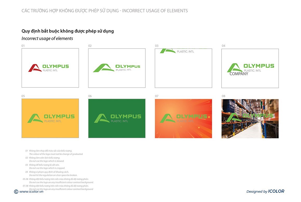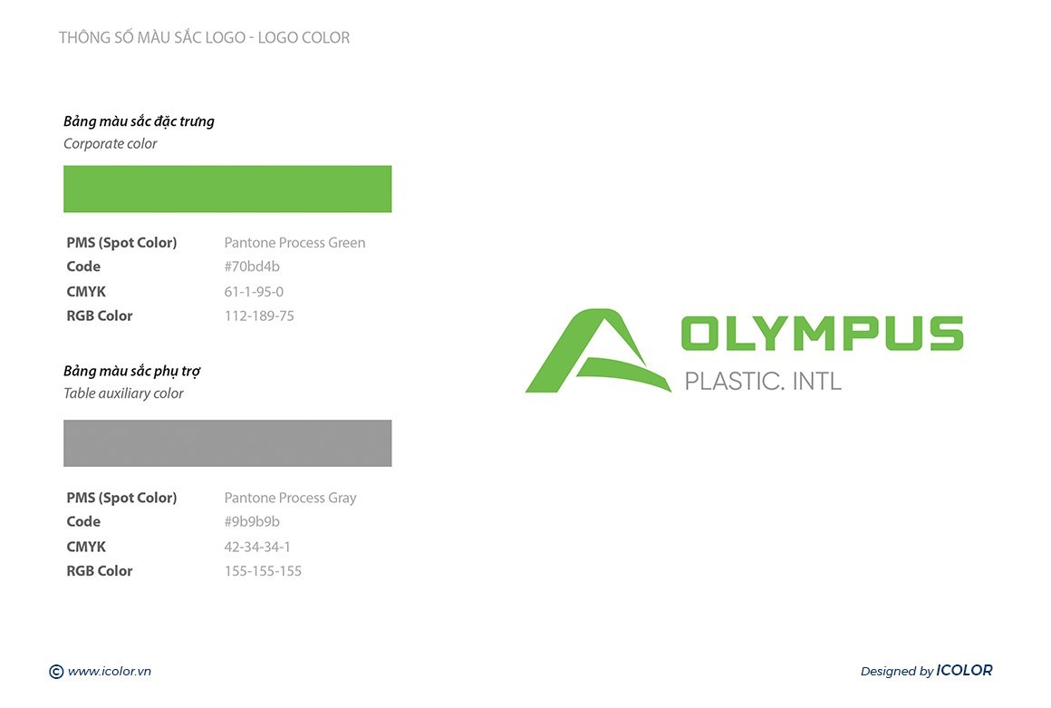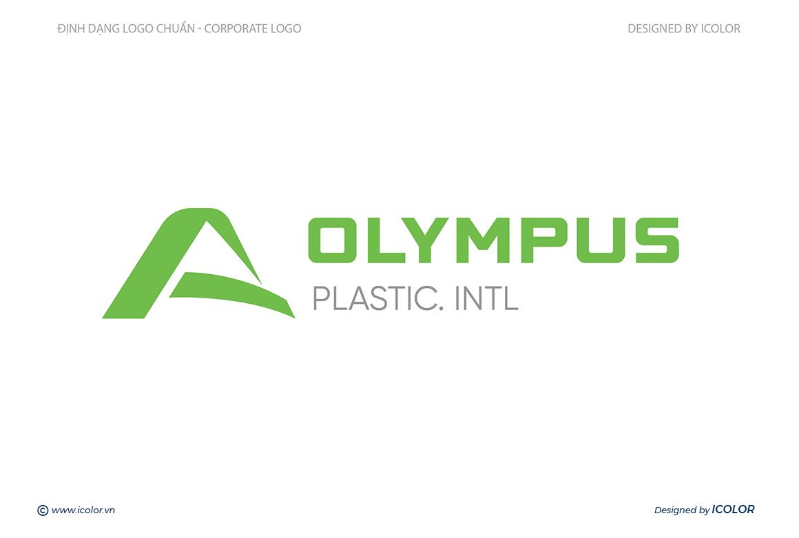 - Biểu tượng màu xanh lá có hình dáng cách điệu, gợi lên hình ảnh ngọn núi Olympus – biểu tượng của sự vững chắc, vươn cao và chinh phục. Màu xanh cũng đại diện cho sự thân thiện với môi trường, phù hợp với lĩnh vực nhựa và định hướng phát triển bền vững.