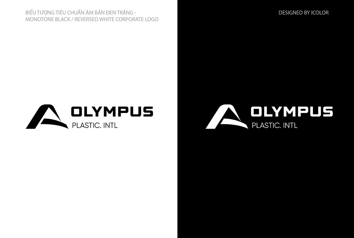 Logo Olympus Plastic. INTL được thiết kế theo phong cách tối giản nhưng đầy ý nghĩa, thể hiện sự chuyên nghiệp, bền vững và tầm vóc quốc tế.