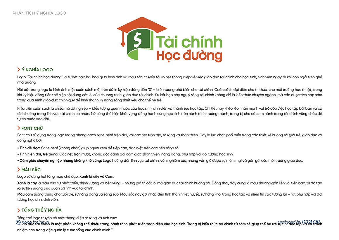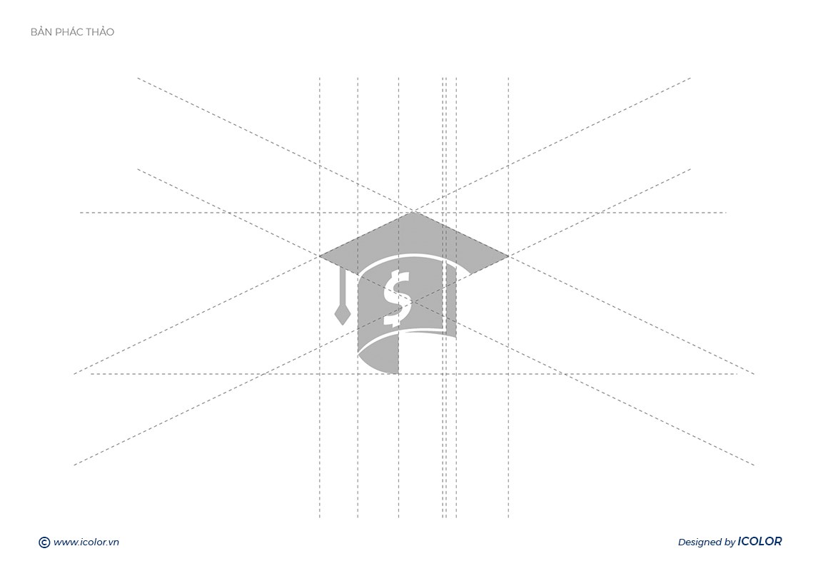Logo là sự kết hợp hài hòa giữa tri thức và tài chính, được thể hiện qua hình ảnh cuốn sách mở và biểu tượng $ – biểu trưng cho sự hiểu biết, quản lý và làm chủ đồng tiền.