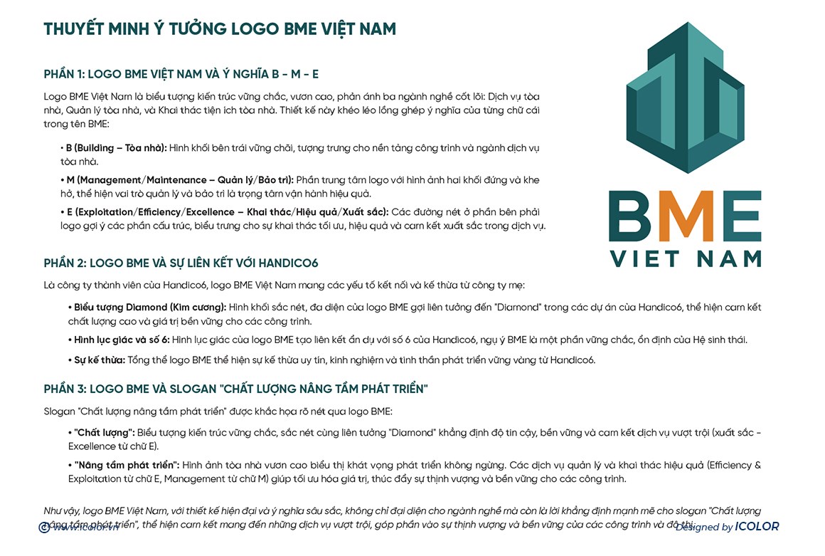 BME VIET NAM là doanh nghiệp hoạt động trong lĩnh vực quản lý, vận hành và khai thác tiện ích tòa nhà, cung cấp các giải pháp toàn diện nhằm nâng cao hiệu quả sử dụng và tối ưu hóa giá trị bất động sản. Với định hướng phát triển chuyên nghiệp, hiện đại và bền vững, BME VIET NAM mong muốn xây dựng hình ảnh thương hiệu thể hiện rõ sự tin cậy, chuẩn mực và năng lực quản trị cao.