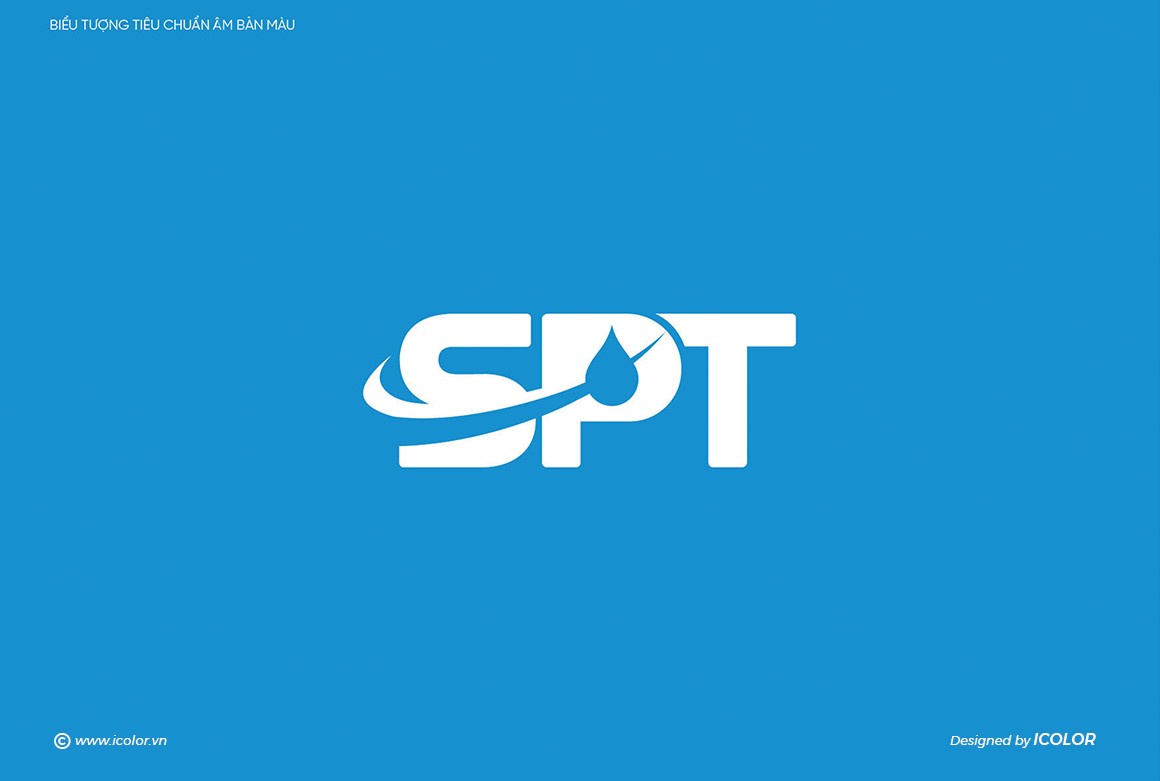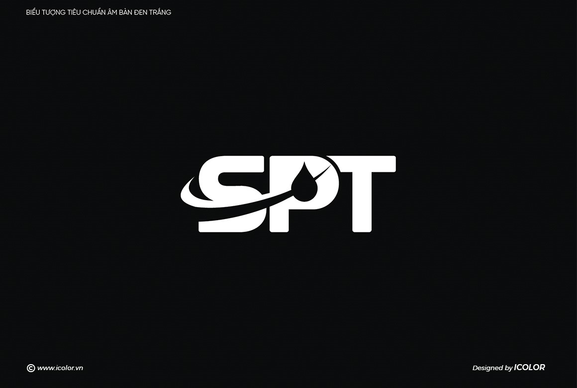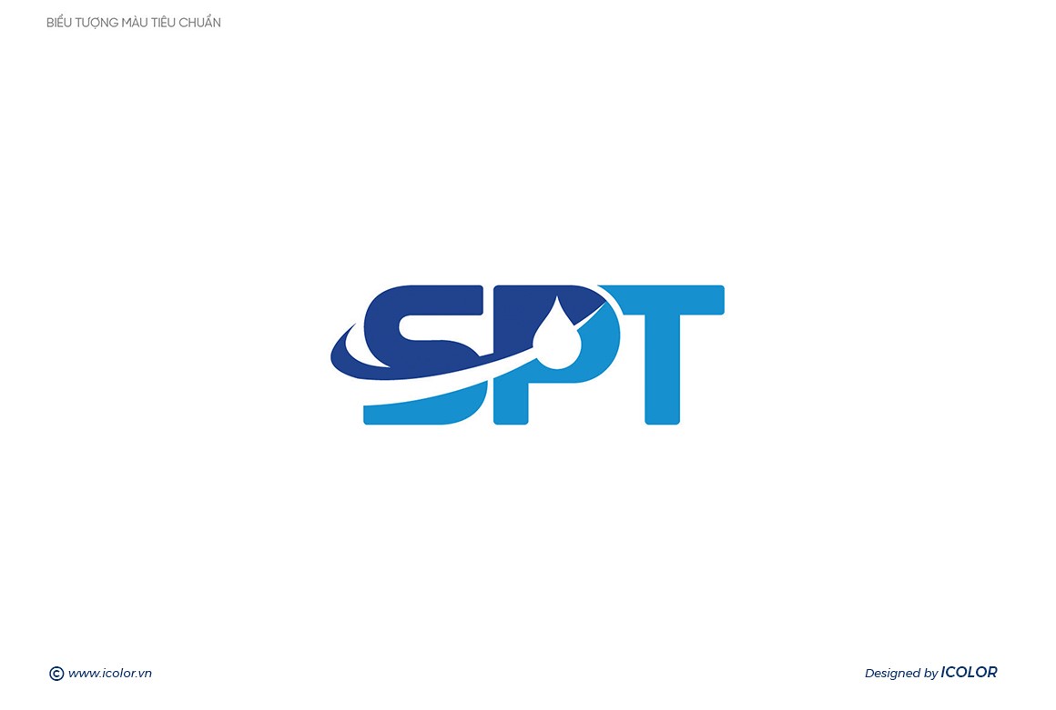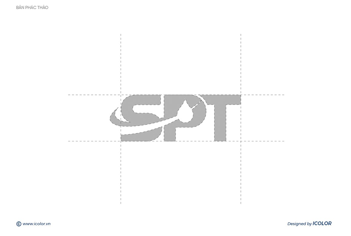 Ba chữ cái SPT được tạo hình góc cạnh, chắc chắn, thể hiện sự ổn định, uy tín và đáng tin cậy trong ngành vận tải. Nét cong mềm mại lướt qua chữ S và giọt dầu được cách điệu trong chữ P là điểm nhấn đặc biệt, tượng trưng cho dòng chảy năng lượng – vừa là xăng dầu, vừa là sự vận hành không ngừng của doanh nghiệp.