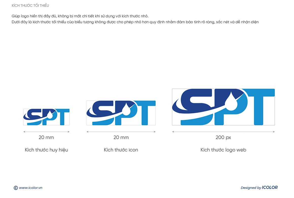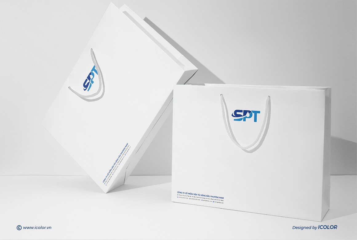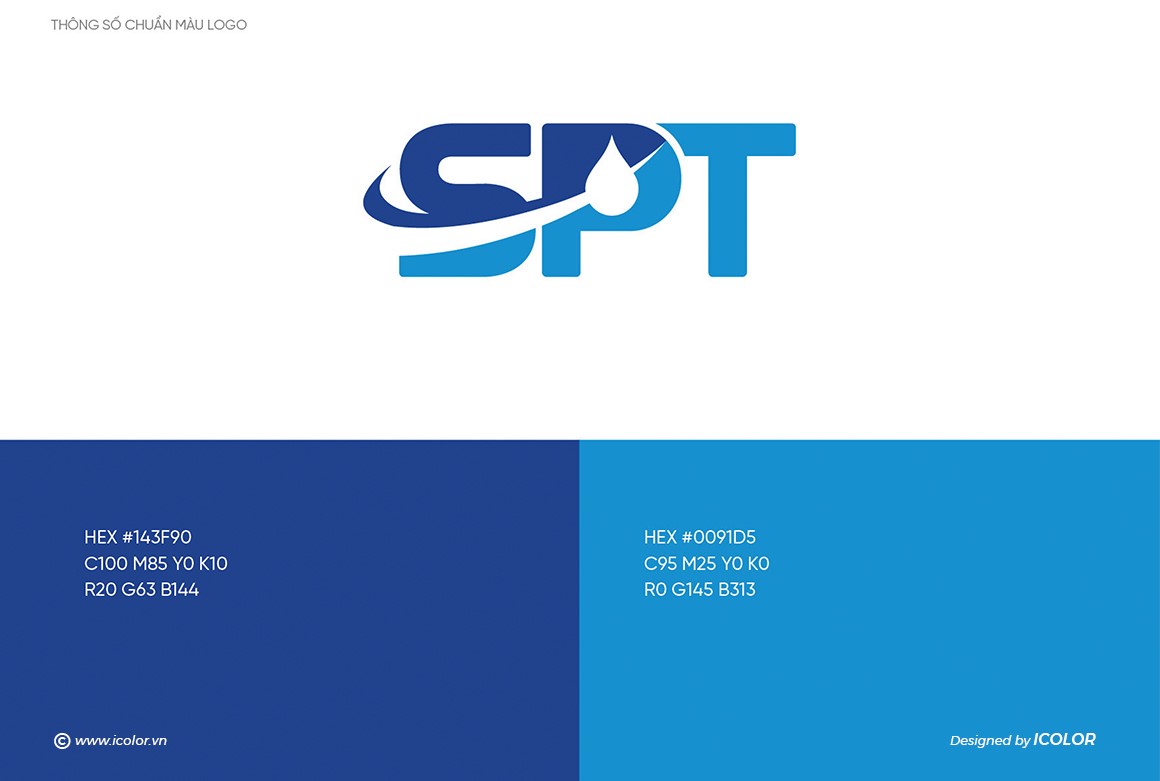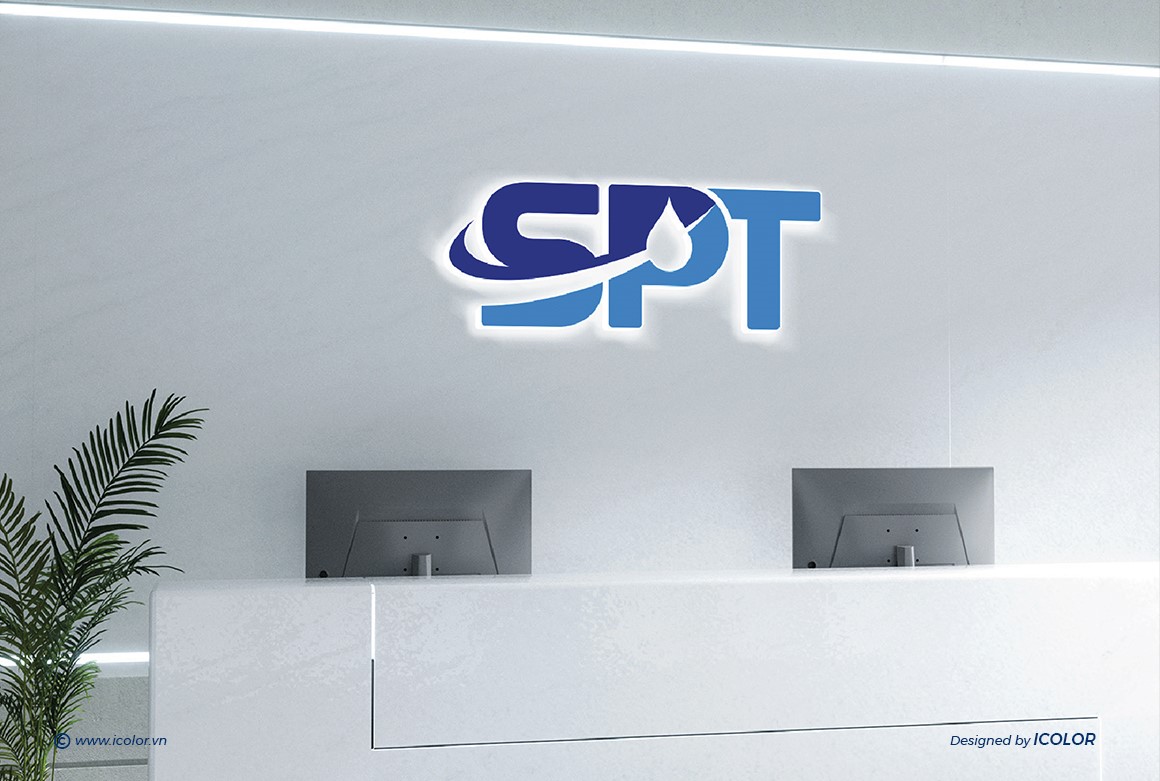 Ba chữ cái SPT được tạo hình góc cạnh, chắc chắn, thể hiện sự ổn định, uy tín và đáng tin cậy trong ngành vận tải. Nét cong mềm mại lướt qua chữ S và giọt dầu được cách điệu trong chữ P là điểm nhấn đặc biệt, tượng trưng cho dòng chảy năng lượng – vừa là xăng dầu, vừa là sự vận hành không ngừng của doanh nghiệp.
