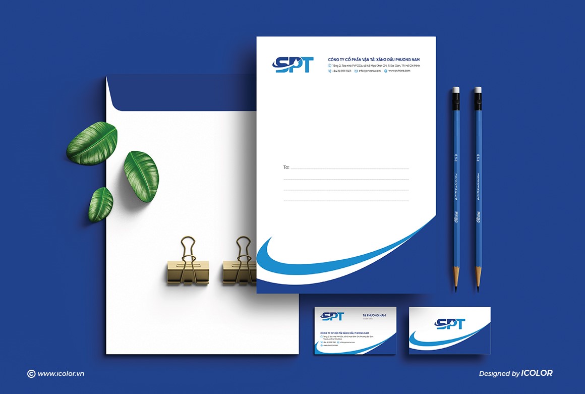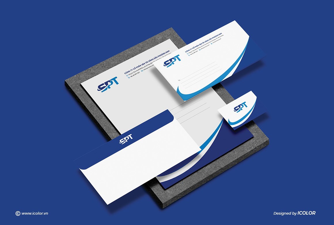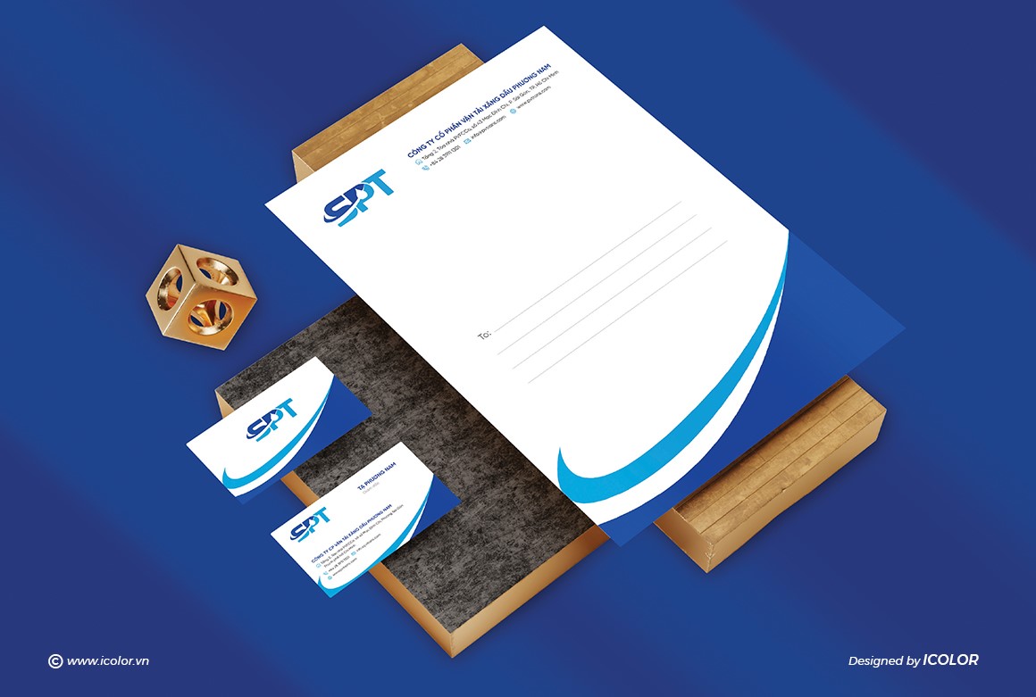 Tông màu xanh dương chủ đạo đại diện cho biển cả, sự tin cậy và tầm nhìn vươn ra quốc tế. Kết hợp cùng hình ảnh minh họa ở phần dưới, logo truyền tải thông điệp về sự kết nối toàn cầu, năng lực vận tải mạnh mẽ và cam kết phục vụ an toàn – hiệu quả của SPT.